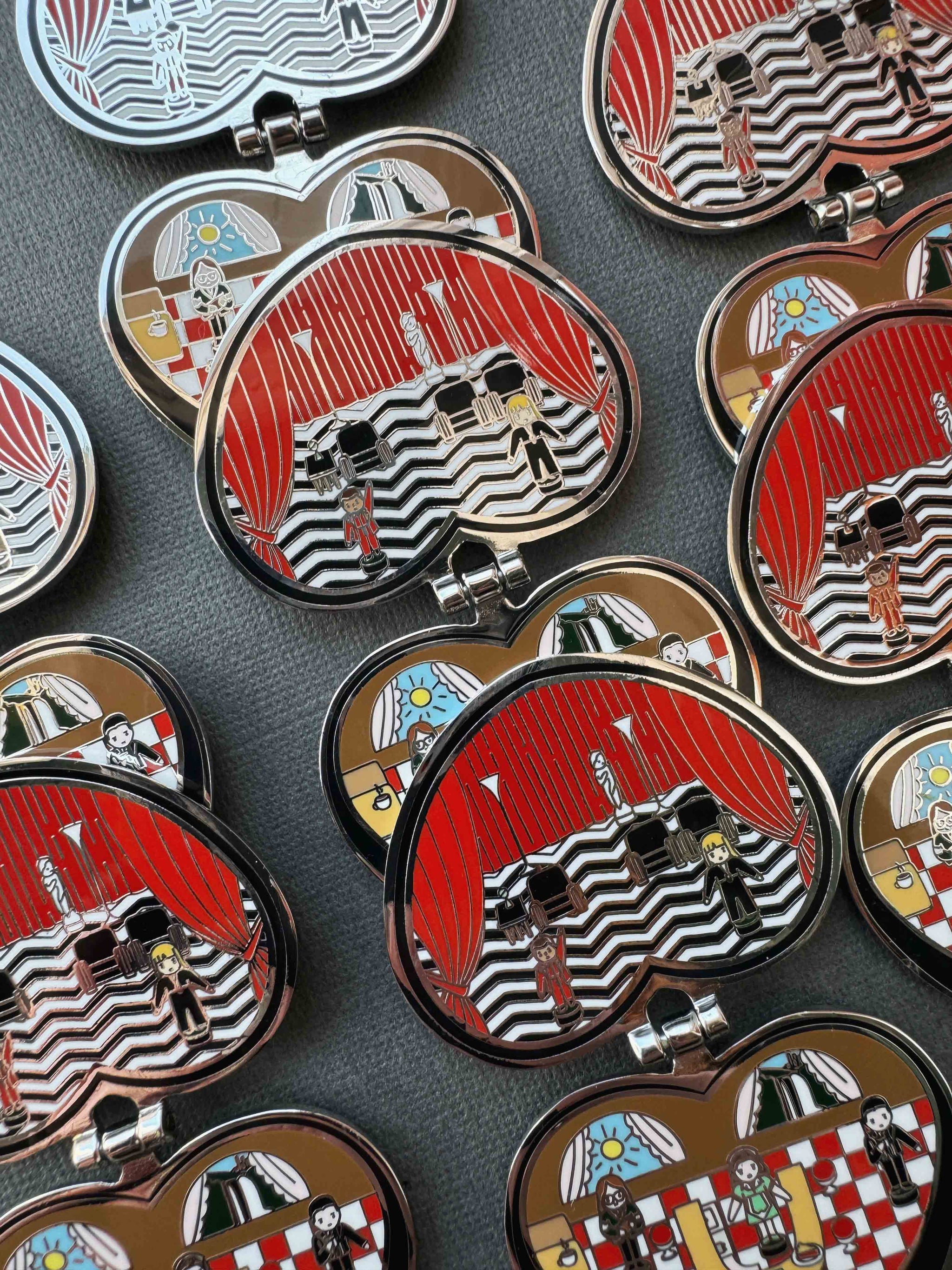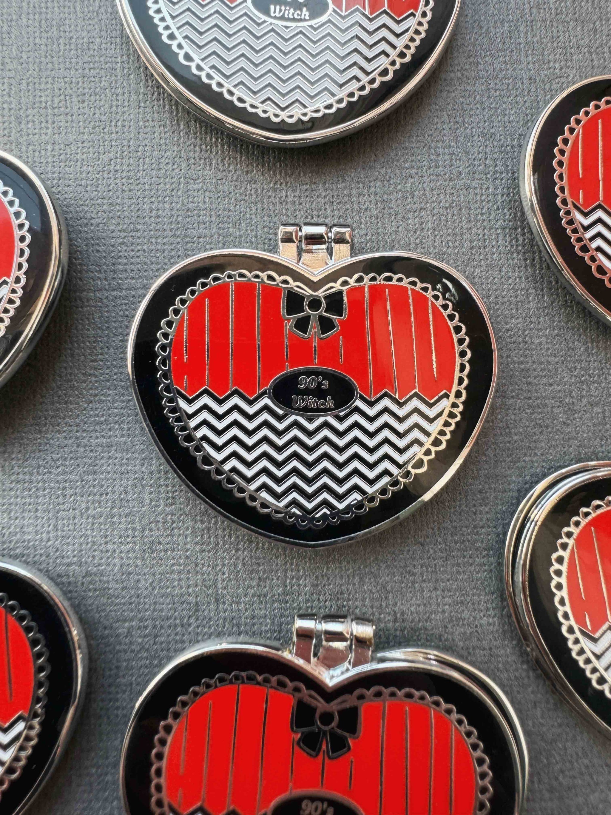Sister Witches unite! Gold metal and a gorgeous oxblood red make this pin a deep...