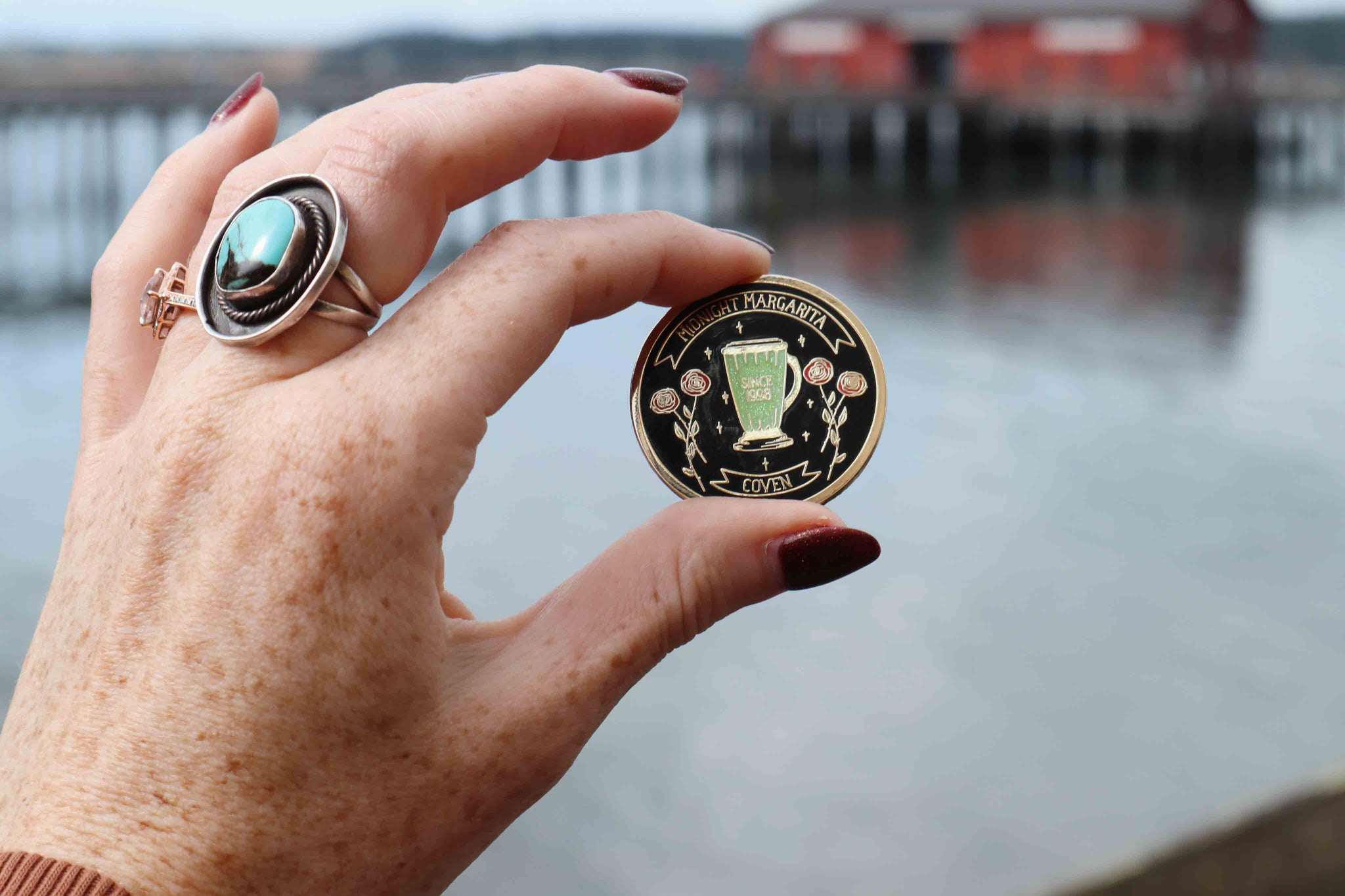 Sister Witches unite! Gold metal and a gorgeous oxblood red make this pin a deep...
