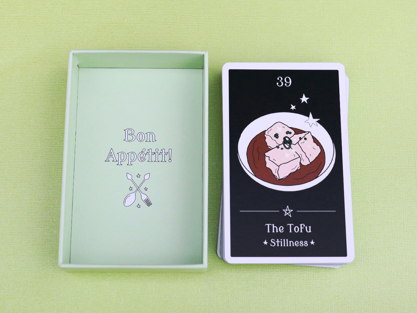 This 42-card deck and guidebook is an exploration of the things we crave. Magick Morsels is inspired by our favorite culinary delights and infused with a spoonful of witchcraft. Use this deck to guide you on your witchy path, or when you can't decide what to make for dinner.