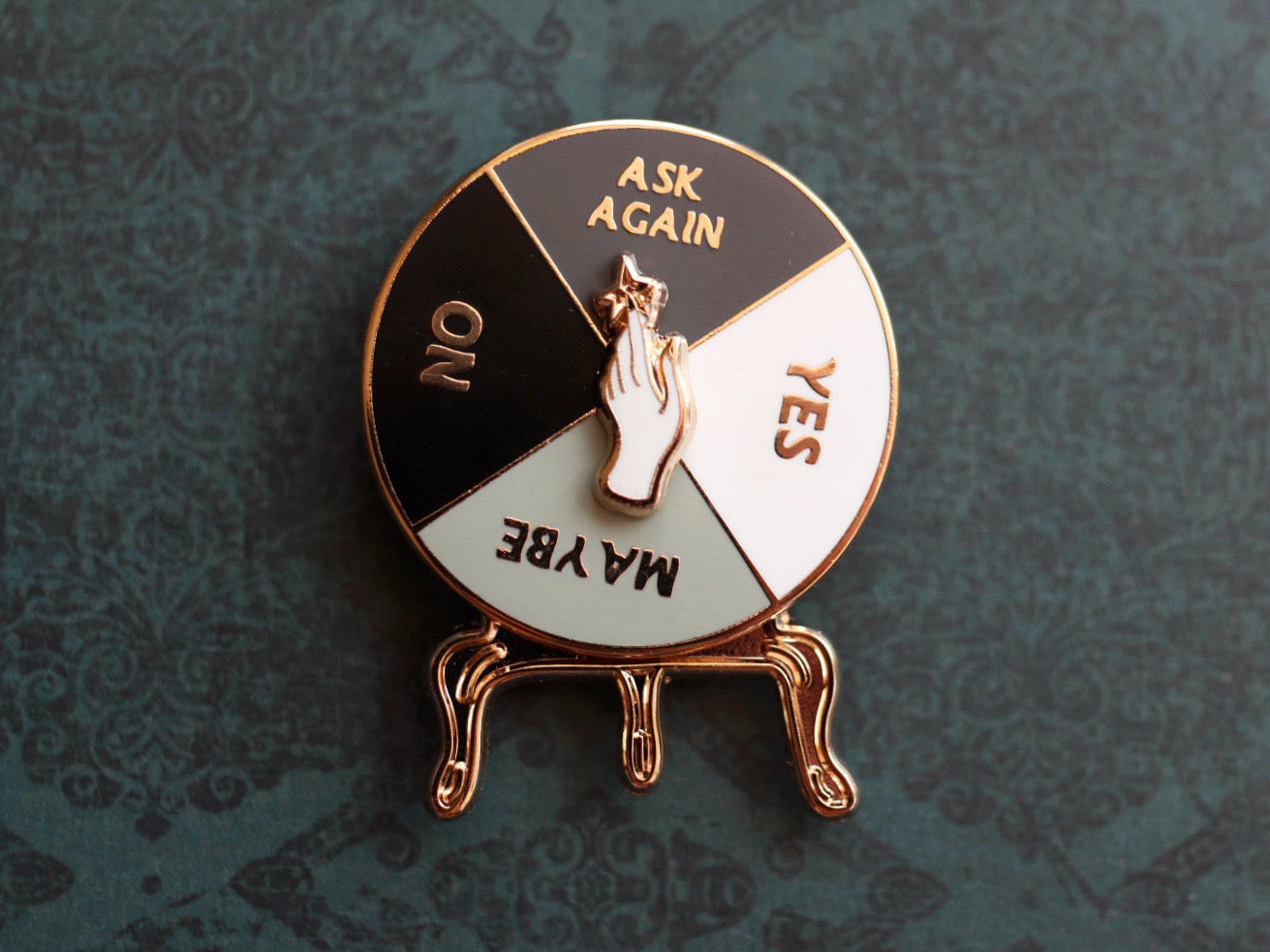 Discover your fate with the Crystal Ball Spinner Pin! This unique pin features a spinning crystal ball, allowing you to perform yes/no divination anywhere you go. Get answers on the fly with this convenient and clever accessory!